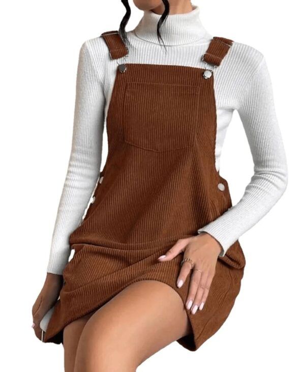 La robe salopette en velours côtelé n’est pas seulement une pièce de mode, elle s’adapte à toutes les saisons. Que vous la portiez avec un t-shirt en été pour un look frais ou avec un pull en hiver pour rester au chaud, elle devient un incontournable de votre garde-robe.